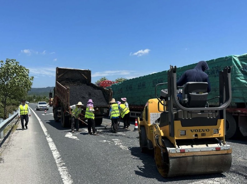 路面修复:对出现裂缝、坑洞的路段进行切割、清理,并采用高性能沥青混合料进行修复,确保路面平整、坚固。